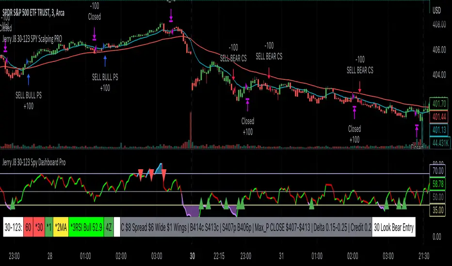 This script is used in conjunction with Jerry J8 30-123 Spy Scalping Dashboard Pro indicator which is the dashboard to give a visual for the 4 main criteria and makes things easier to understand.