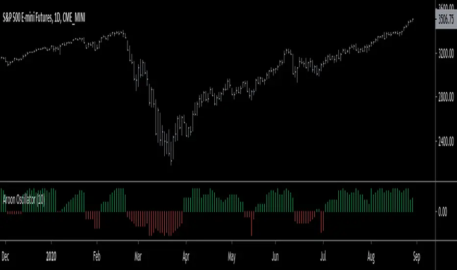 The indicator produces the same signals as Aroon, but presents them in columns.