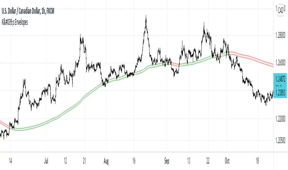 The idea of K's Envelopes is to form support and resistance zones so that we find good entry points. It is a combination of two 800-period moving averages where one is applied to the highs and the other applied to the lows, thus forming a moving zone used to support or place a ceiling on the market price.