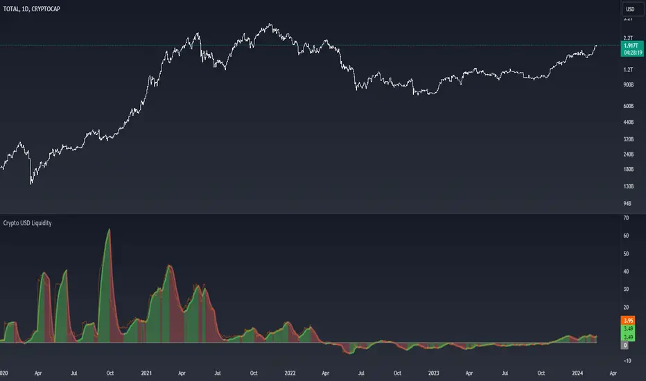 - In summary, the "Crypto USD Liquidity" Pine Script indicator empowers users with a customizable and visually informative tool for analyzing and interpreting the complex dynamics of stablecoin liquidity, facilitating more informed decision-making in the realm of cryptocurrency trading and investment.