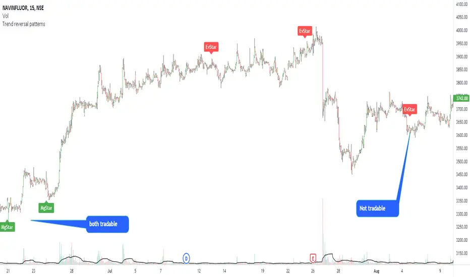 This script highlights modified version of evening and morning star candlestick patterns. Volume has also been added in the script to create convergence of volume with price action.