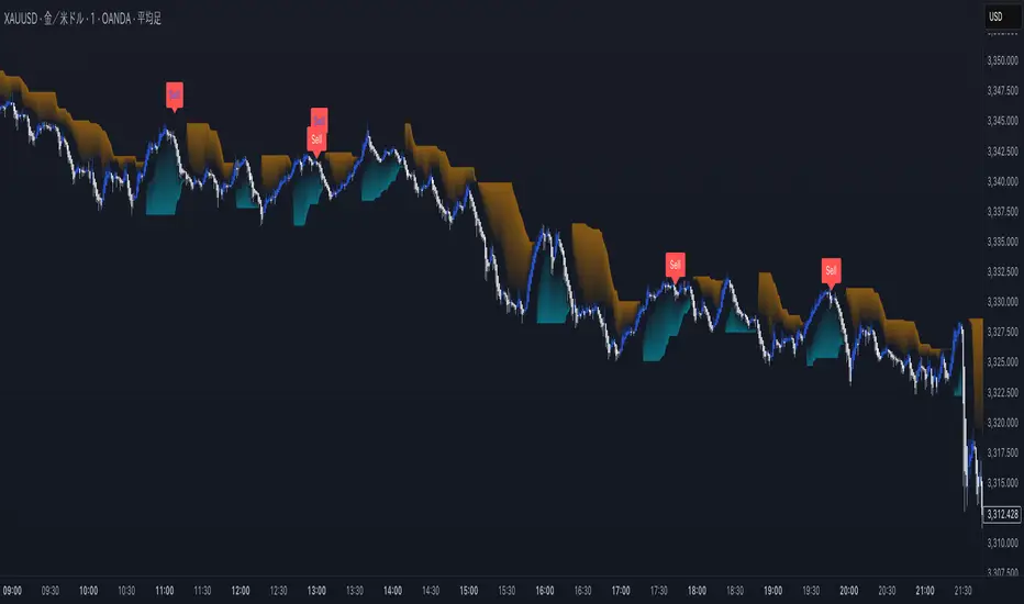 チャート上に Buy(上矢印)/Sell(下矢印)のサインが自動で表示され、反転の兆しを知らせてくれます。