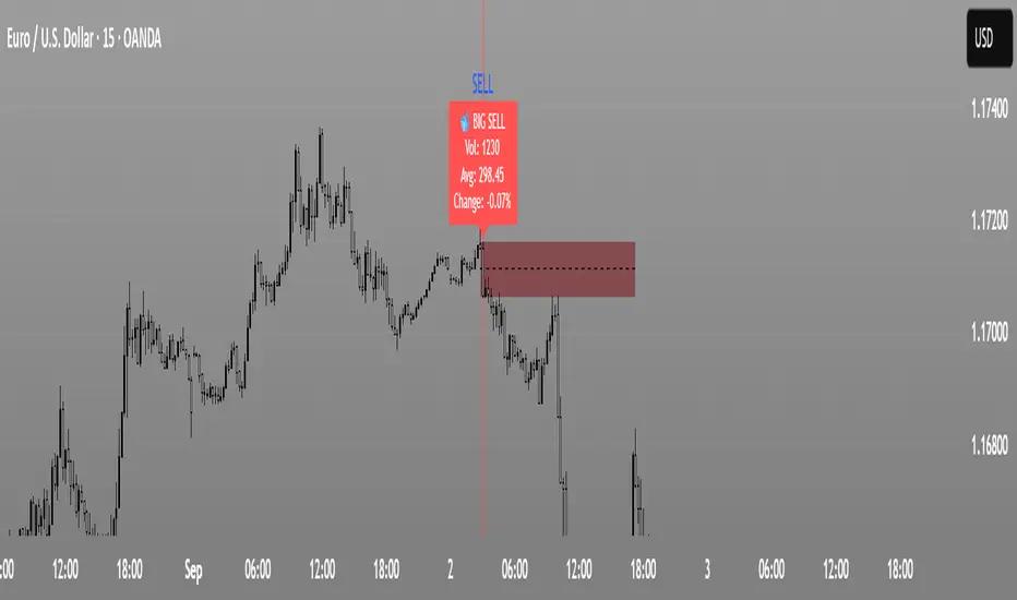 This indicator helps traders identify significant buy/sell orders (whale activity) by analyzing volume spikes and price movements. Perfect for spotting institutional entries and exits.