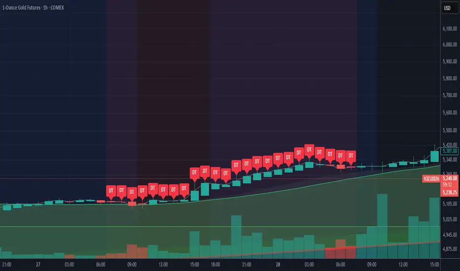 - Green "DB" after a sell-off → Watch for bounce/long opportunity (like your recent gold double bottoms)