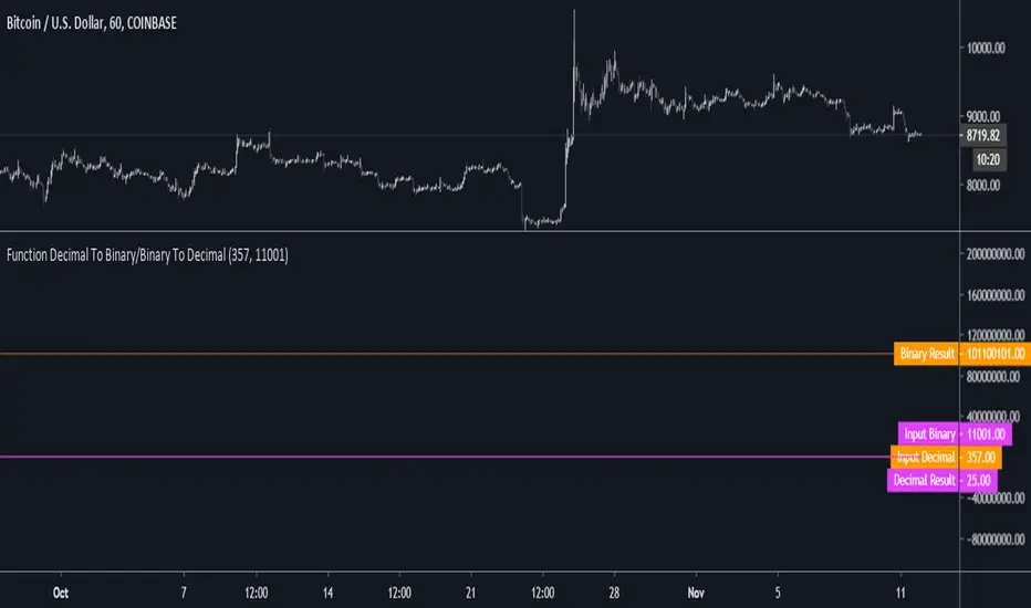 NOTE: Experimental. Pinescript implementation of Decimal to Binary and Binary to Decimal that is intended for use in the development of a neural network proof of concept.