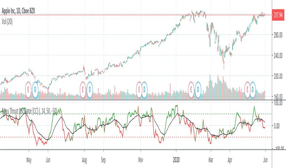 This is a custom indicator that turns my Mass Thrust Indicator into an oscillator which is loosely based on Tushar S. Chande's Market Thrust Oscillator (Stocks & Commodities V. 10:8 (347-350))