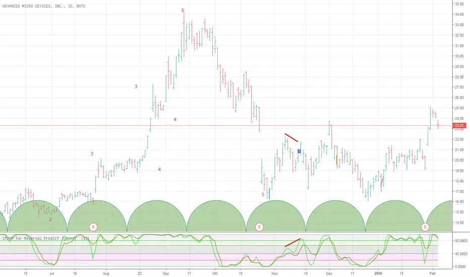 The length of one cycle divided by 2 equals the proper value for %D specified for that stock /index. The script offers an input for this specific value.