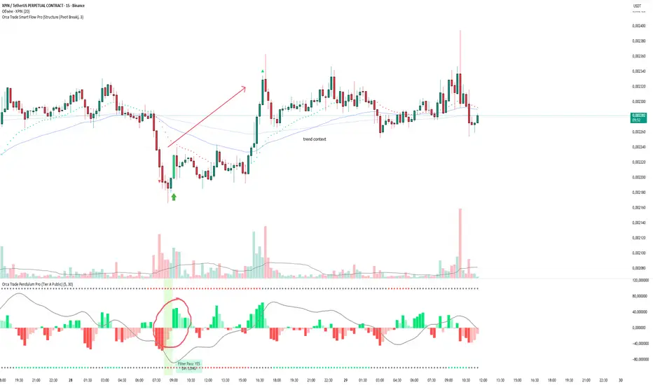 Orca Trade Pendulum Pro is a momentum-based oscillator designed to identify market flips near exhaustion zones and provide a clear PASS / NO PASS decision framework.