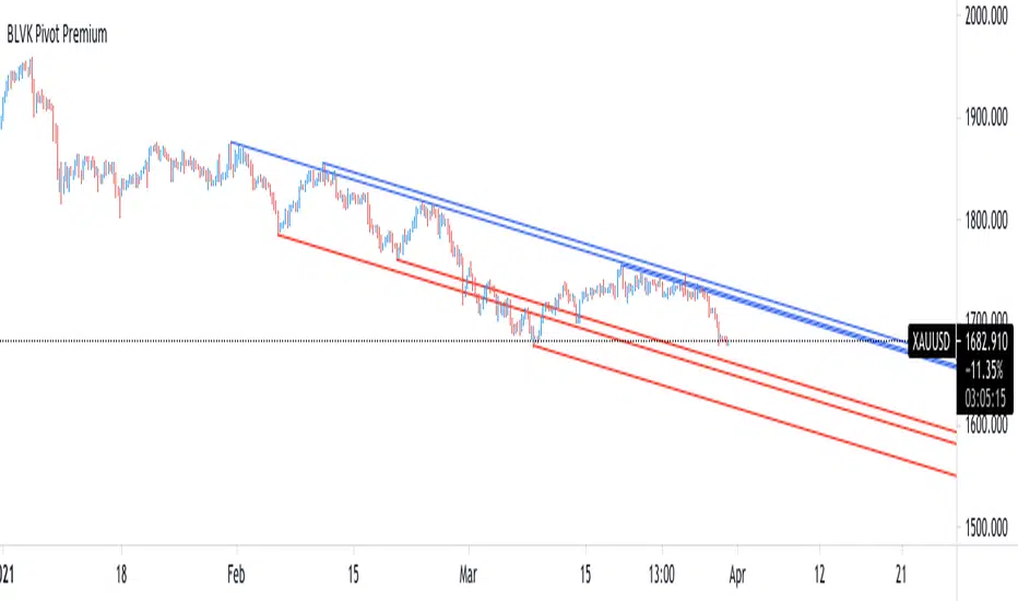 The script has currently several real time behavior limitations. Lines are displayed retrospectively and will not update with the arrival of new bars. Readjusting the indicator to newer pivots will require the user to either hide/unhide the indicator or change its settings.