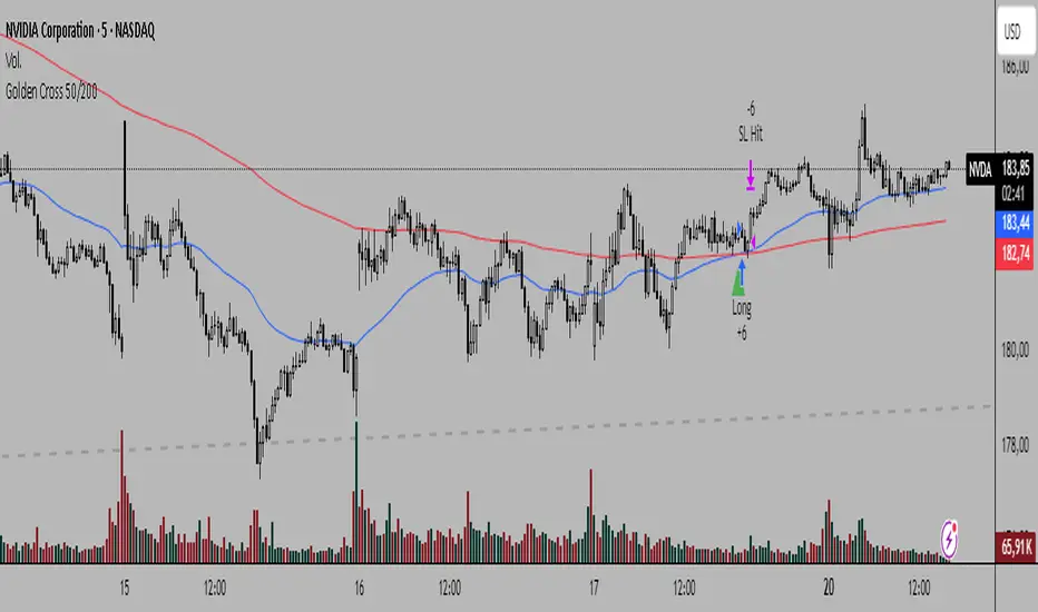 -Take Profit (TP) triggered when the 50 EMA crosses below the 200 EMA.