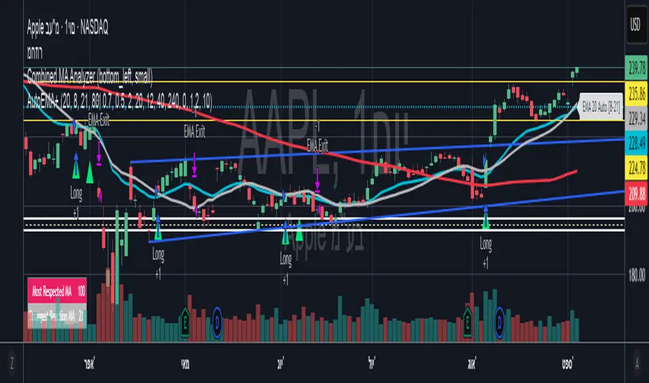 A long-only EMA crossover strategy that automatically selects the optimal EMA length (5–25) based on historical performance using a custom scoring system.