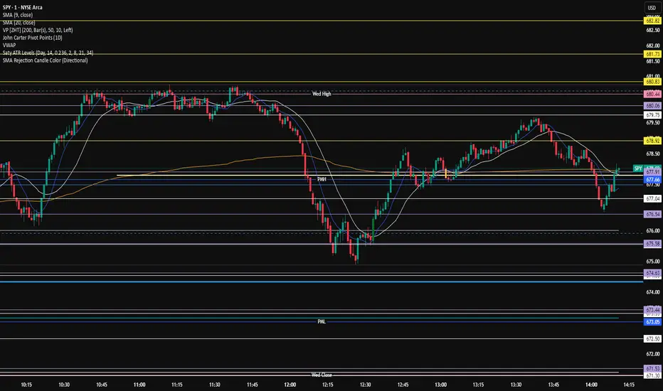 Candle color changes to dark red when opening above the 9/20 SMAs when the 9 is above the 20 and closes below.
