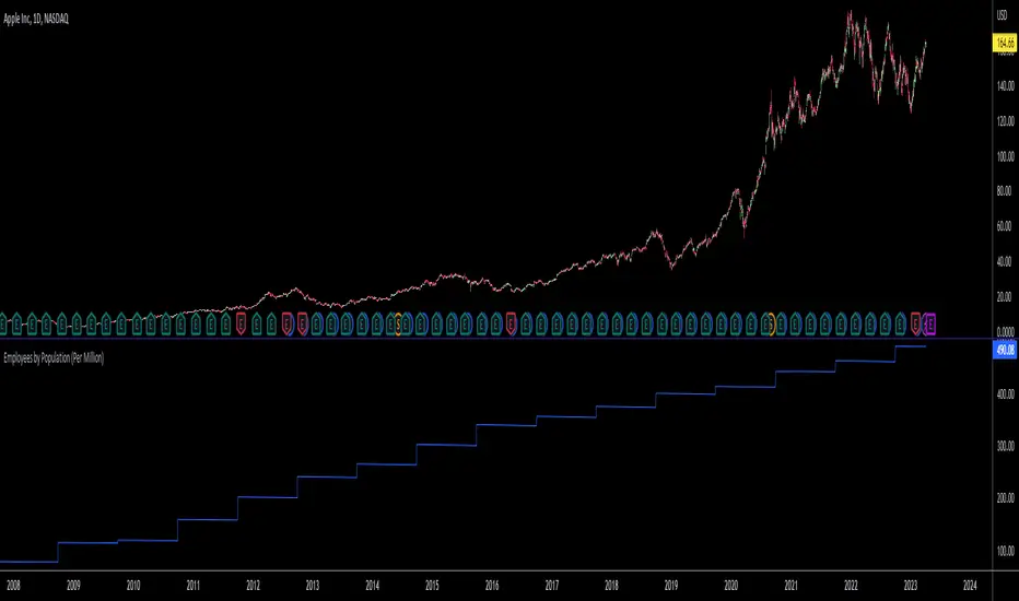 This script measures the number of employees a company has per million people in the US population, either by total or employed population.
