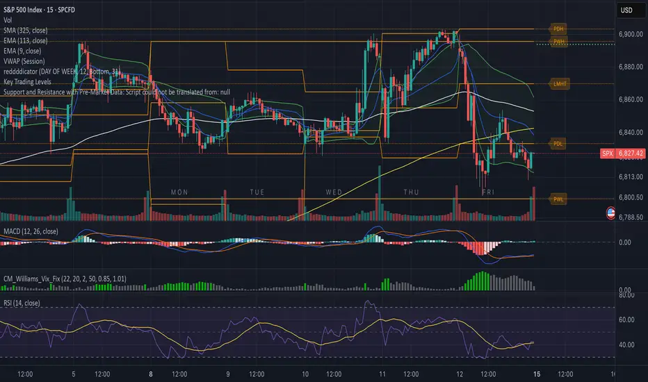 This scrip plots the previous day high and lows, pre market high and lows, previous week high and low.