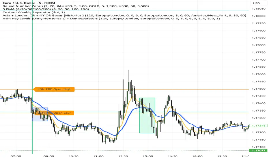 Ram Key Levels (Daily Horizontals) + Day Separators