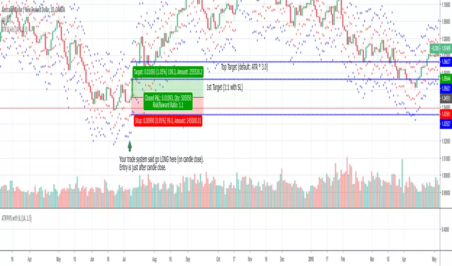 The blue line is the same ATR multiplier as a target (default but can be modified).