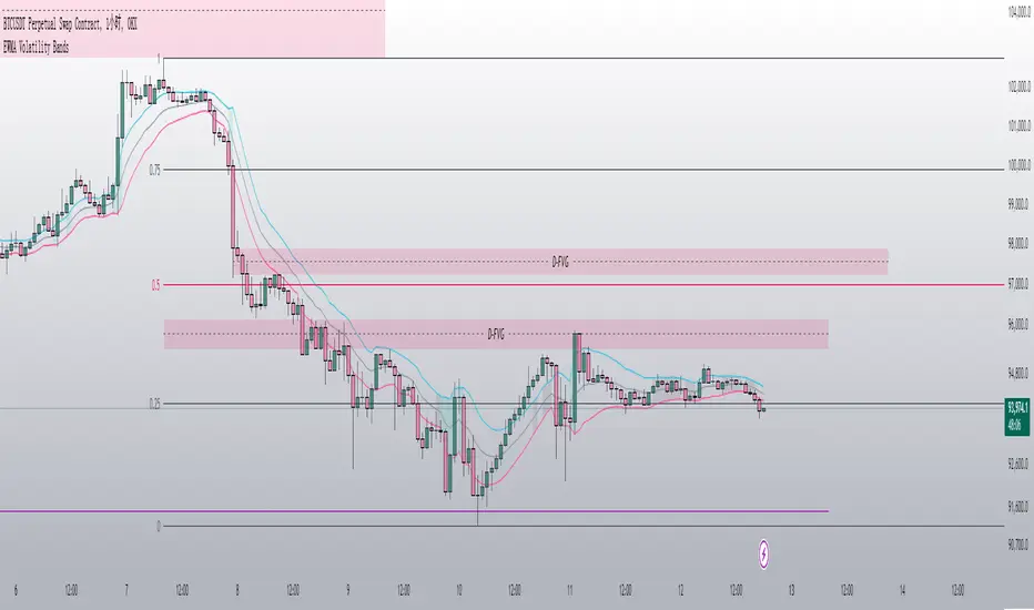 The EWMA Volatility Bands indicator combines an Exponential Moving Average (EMA) and Exponentially Weighted Moving Average (EWMA) of volatility to create dynamic upper and lower price bands. It helps traders identify trends, measure market volatility, and spot extreme conditions. Key features include: