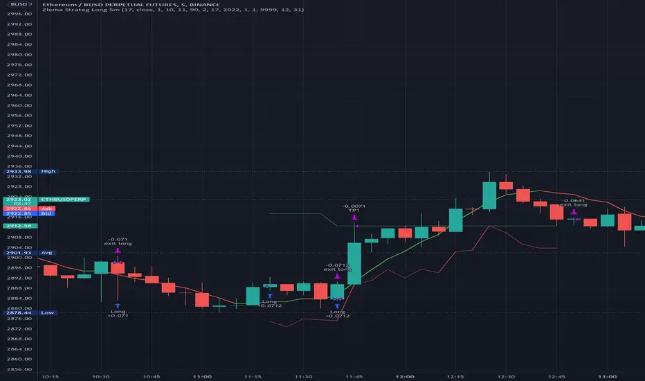 Opens long trade when Zlema changes color.