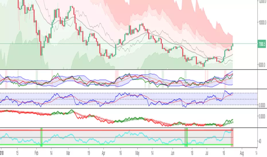 This script combines LazyBear's RSI Bands with JayRoger's Bollinger Heat Bands, to give an on chart representation of the price needed to set RSI to each major level, from 20 to 80 (higher values created massive bands).