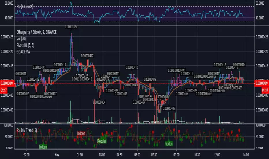 This indicator allow to show the EMA of the price similar to GDAX user interface.