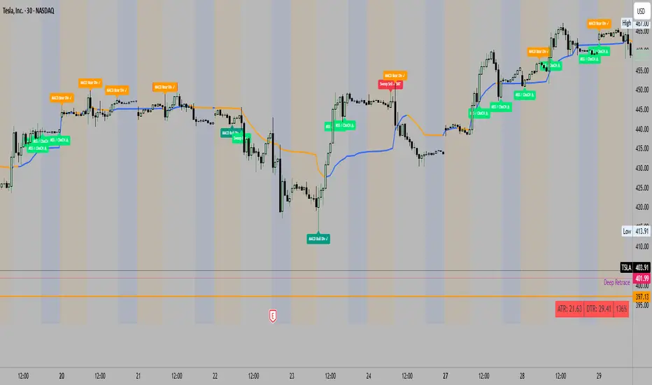 This tool detects **high-probability buy/sell sweeps**, confirms them with market structure, Volume, MACD engine, Trend filtering, SMT divergence, and overlays a Rolling VWAP to track accumulation & distribution behavior.