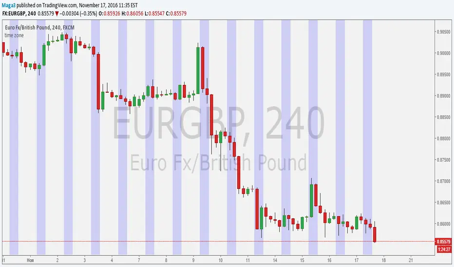 TradingView in time is specified by UTC. I Moscow time (GMT +3) and the time specified in the script Default 1:00 - 13:00 Moscow time equal 09:00 - 21:00 ie -8 Hours from the Moscow time (-7 in summer).