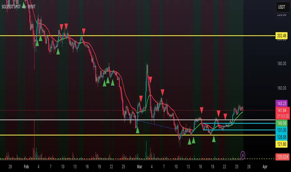 On a 4-hour SOLUSDT chart, the DTI with VWAP Filter might show: