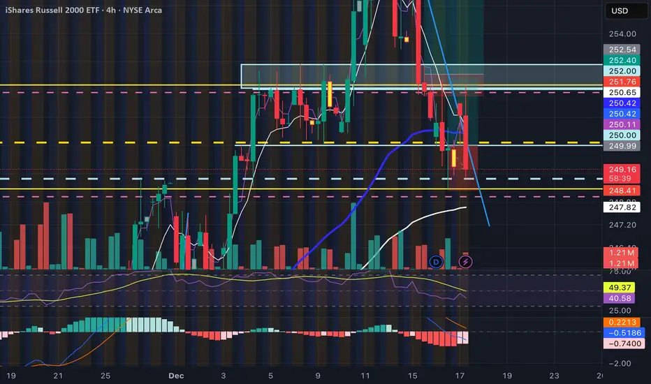 · Monthly (light blue dashed) and Weekly (gold dashed) levels for long-term context