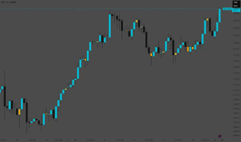 HTF Control Shift Candles highlights reversal-type candles that show a decisive shift in market control between buyers and sellers. These candles are detected by measuring wick length relative to the entire range and the close’s position within that range. A bullish control shift occurs when a candle forms with a long lower wick and closes in the top portion of its range, showing strong rejection of lower prices and a buyer takeover. A bearish control shift occurs when a candle forms with a long upper wick and closes in the bottom portion of its range, showing rejection of higher prices and a seller takeover. Candles are automatically recolored for fast visual recognition, and alerts are built in so traders never miss a potential shift in control.
