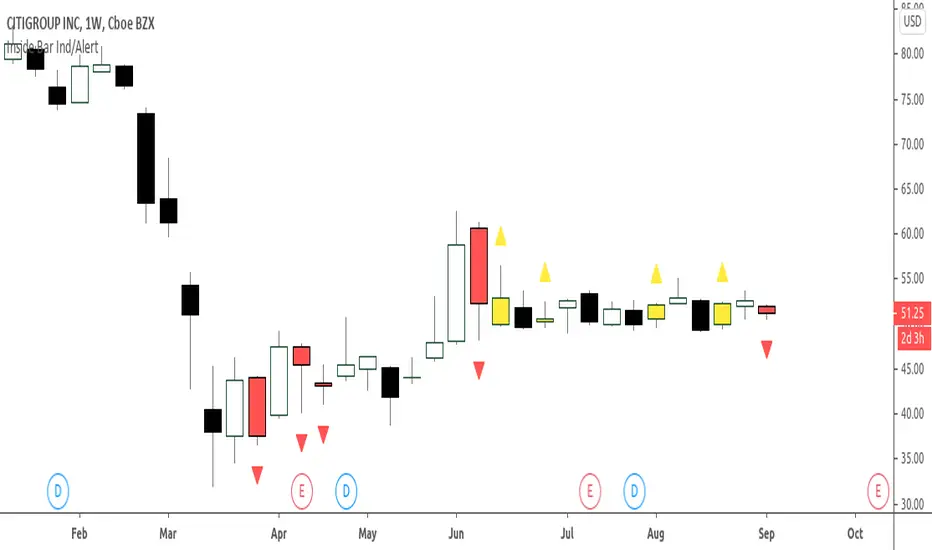 Plotting the indicator overlay and put arrows when the inside bar appear, green bullish and red bearish!Mã nguồn mở