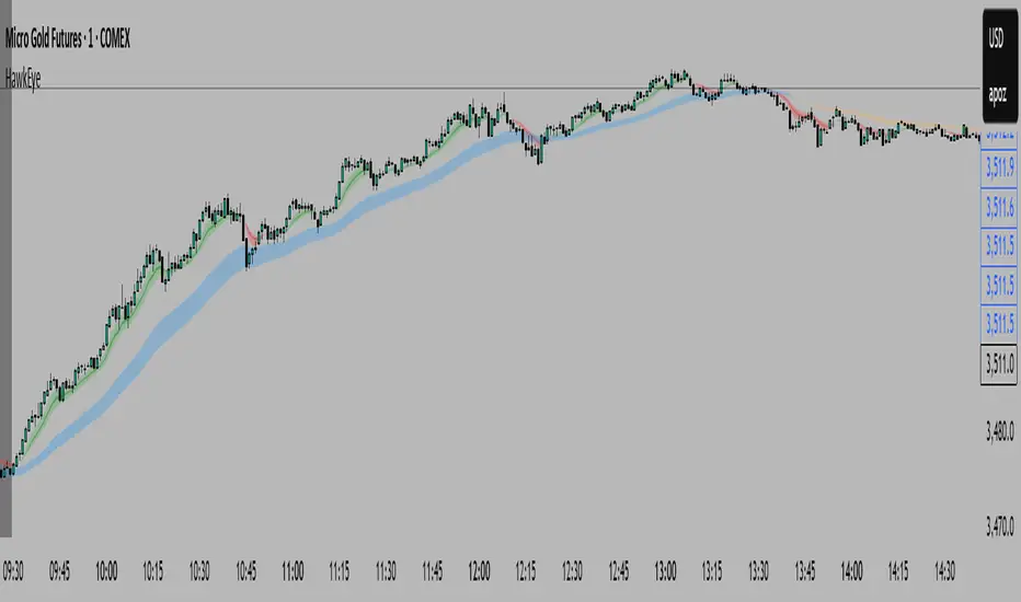 The HawkEye EMA Cloud is an advanced technical analysis indicator that visualizes multiple Exponential Moving Average (EMA) relationships through dynamic color-coded cloud formations. This enhanced version builds upon the original Ripster EMA Clouds concept with full customization capabilities.