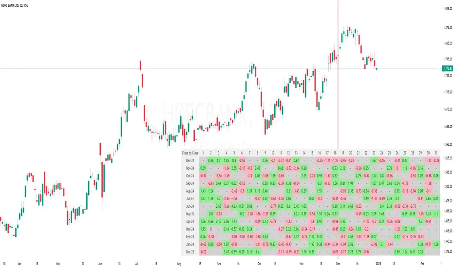 The "Daily % Change Matrix" is a powerful tool designed to visualize daily percentage changes in stock prices. This indicator helps traders analyze trends and volatility over time, enabling data-driven decisions.