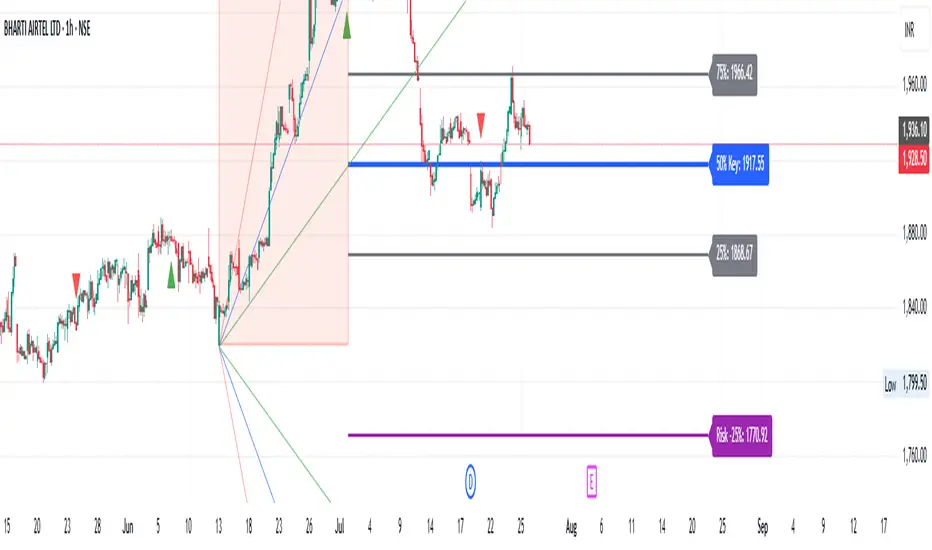 1. Entry: Buy when price touches the dark blue 50% line from above