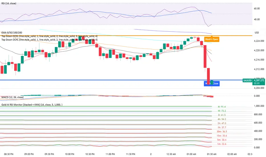 The Gold AI RSI Monitor is a next-generation dashboard designed specifically for trading volatile assets like Gold (XAUUSD). It completely reimagines the traditional RSI by "stacking" 10 different timeframes (from 1-minute to Monthly) into a single, vertical view.
