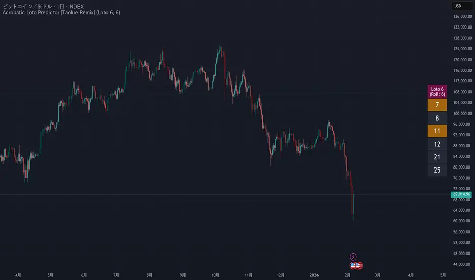 このインジケーターは、現在のチャートの「価格変動」「時間」「ボラティリティ」を複雑な計算式(カオス力学)に通すことで、Loto 6 (6/43) および Loto 7 (7/37) の予想数字を算出する実験的なツールです。