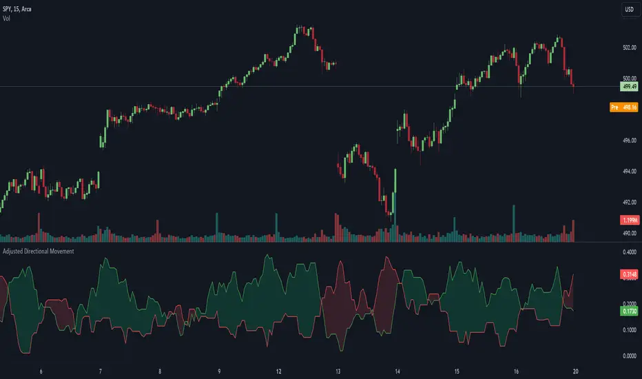 This indicator combines elements of the Average True Range (ATR) and the Directional Movement Index (DMI) to create adjusted directional lines.