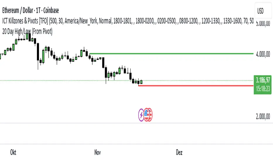 Timeframes: While designed for the classic "20-Day" lookback on the Daily chart, this script works on any timeframe (e.g., finding the 20-hour range on a 1H chart).