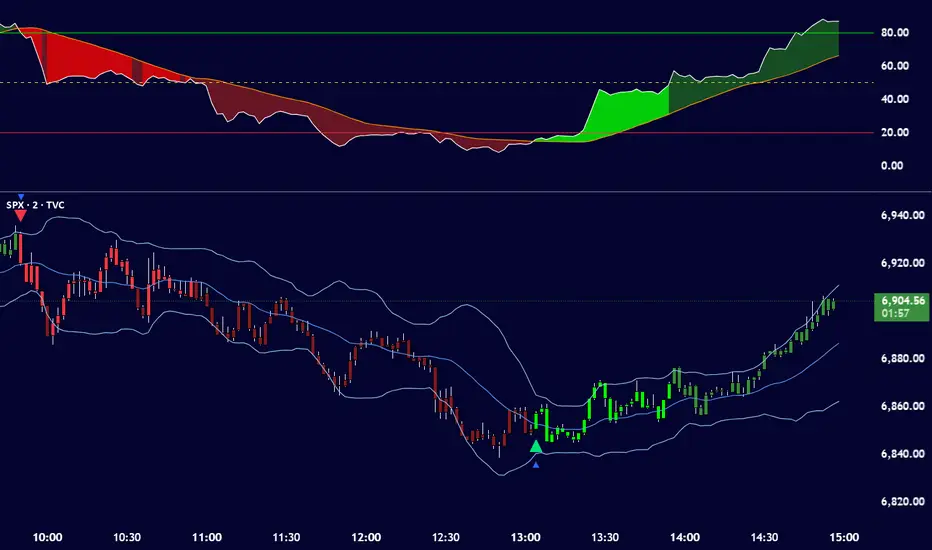 RSI Directional Overlay is a clean, minimal price‑pane tool built around a custom Adaptive RSI (ARSI) engine. It focuses on one thing only: showing the true directional state of momentum with instant visual clarity.