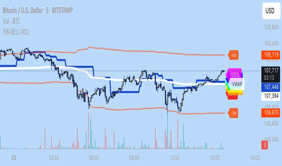 This custom indicator combines Fibonacci retracement levels with volume-weighted statistics (VWAP Bell Curve) to provide high-probability trading signals.