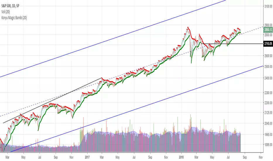 What we want to see in the charts are green trends with shortlived countertrends, we want to buy near the average low price in a bull market and sell near the average high price in a bear market, so we have the lowest risk.