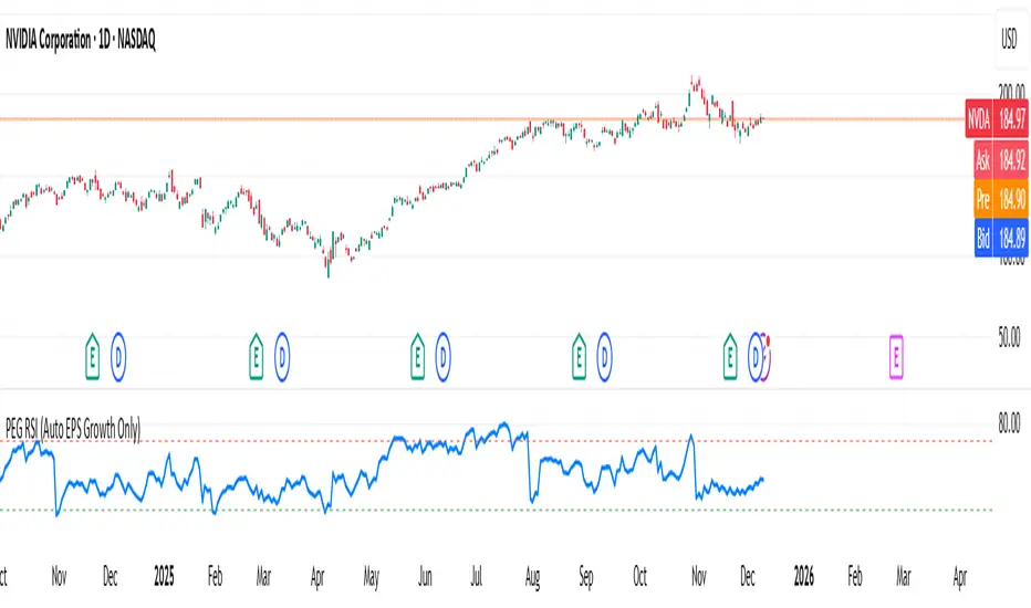 The PEG RSI [Auto EPS Growth] is a hybrid indicator that combines fundamental valuation with technical momentum. It applies the Relative Strength Index (RSI) directly to the Price/Earnings-to-Growth (PEG) Ratio.