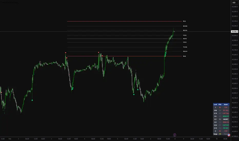 - Master Matrix Panel: A real-time data table displayed on the chart, providing a "Cheat Sheet" of the current range, identifying which levels act as Magnets, Reversal zones, or Continuation triggers.