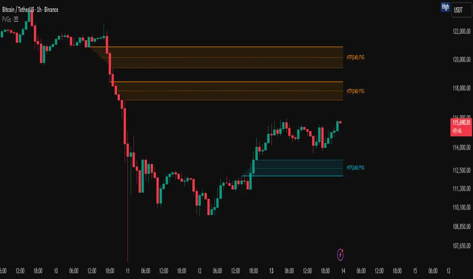Detect and display FVGs from the current chart, higher timeframes (HTF), or lower timeframes (LTF)