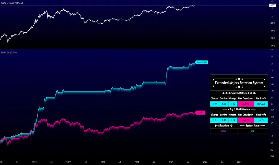 The Extended Majors Rotation System (EMRS) is a quantitative momentum rotation strategy that: