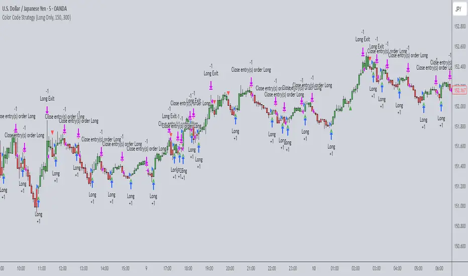 This strategy utilizes a custom color-coded overlay to provide accurate buy and sell signals based on dynamic color changes of the candles. The indicator works by calculating a color shift between bullish (green) and bearish (red) candles, with the color change logic driven by both price movement and volatility.