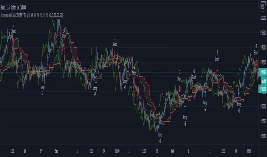 This is a strategy made from ichimoku cloud , together with MACD, Chaiking Money FLOW and True Strenght Index.