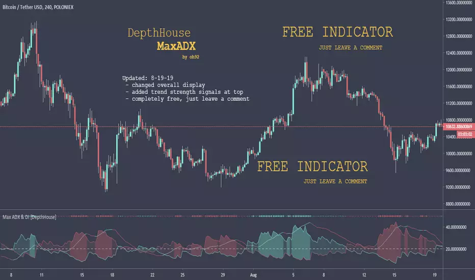 - Taking MaxADX a step farther by creating an overlay that show possible trend strengthening and reversals via bar colors and shapes.
