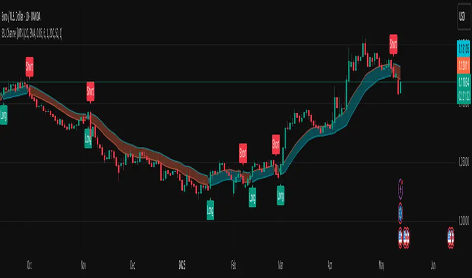 A SSL Moving Averages cross (color changes as well) is assumed as ENTRY signal and the trader can open a position following the trend direction.