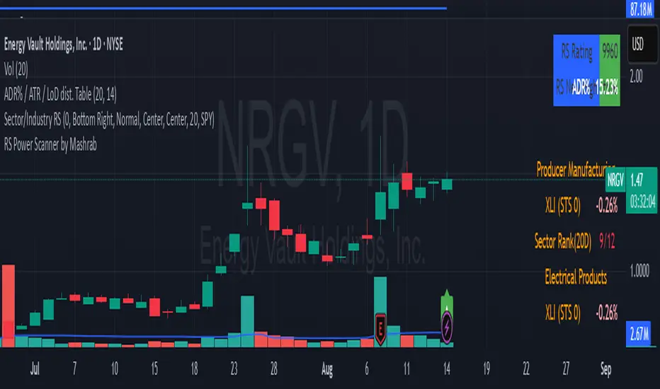 This script implements a custom IBD-style Relative Strength (RS) rating and RS line breakout scanner for any symbol versus SPY. It is designed to help traders quickly identify stocks with market-leading performance.