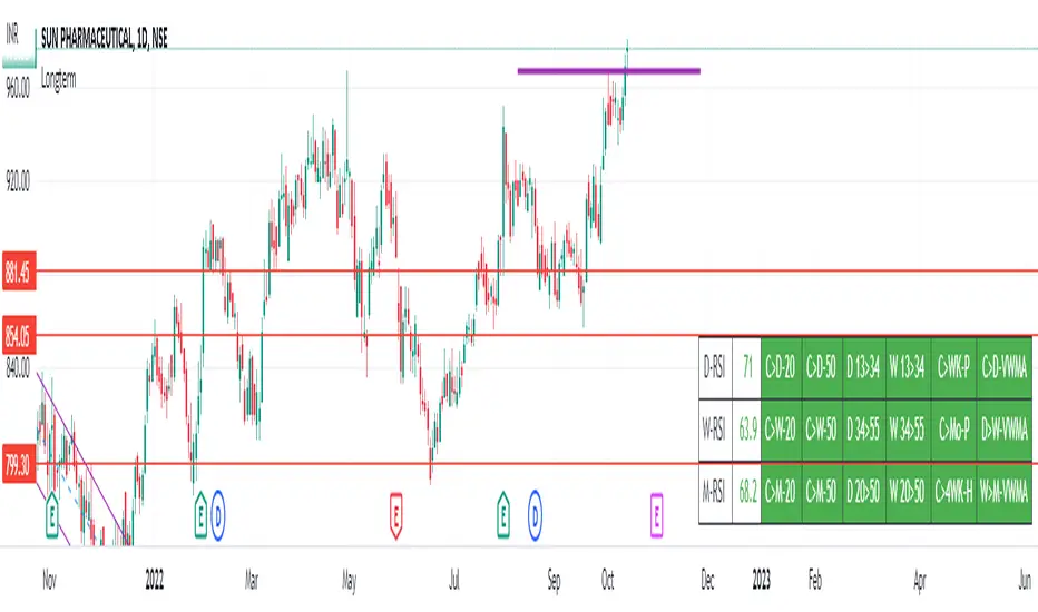 Add the script to any chart and table values remain the same irrespective of current chart resolution, as it checks on Daily, Weekly, and Monthly time frames.